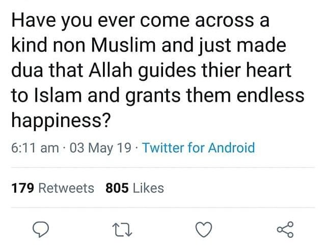 Many people will have come across an attitude among some Muslims that, when they meet a nice person they wish that person was a Muslim, pray for them to convert to Islam, and feel sad if this doesn’t happen. Some of these people seem unable to accept a kind person for who they are, if they happen to be a Christian, Jew, or an Atheist.