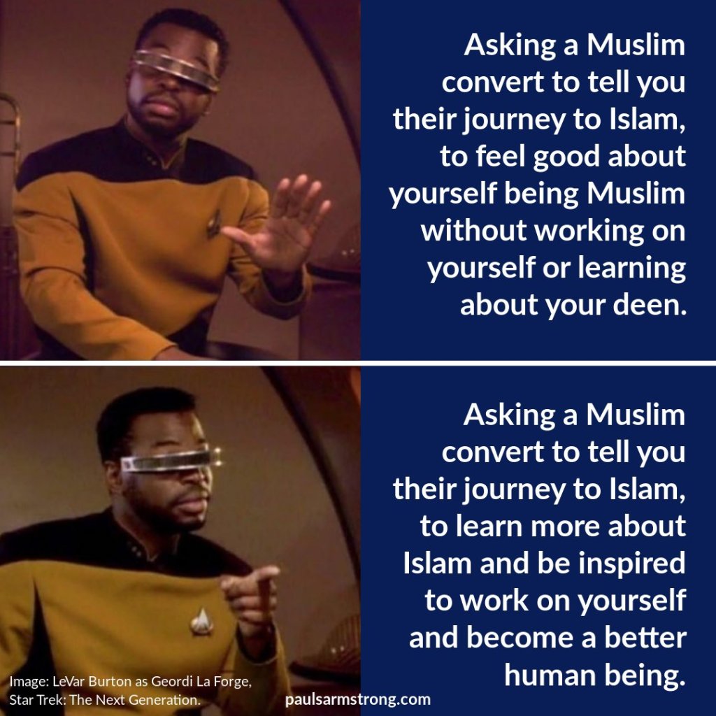 When Asking Converts… What are your intentions when asking converts about their journeys to Islam? Share this:Share Click to share on Facebook (Opens in new window) Facebook Click to share on X (Opens in new window) X Click to share on LinkedIn (Opens in new window) LinkedIn Click to share on Pinterest (Opens in new window) Pinterest Click to share on Telegram (Opens in new window) Telegram Click to share on WhatsApp (Opens in new window) WhatsApp Like Loading... Related