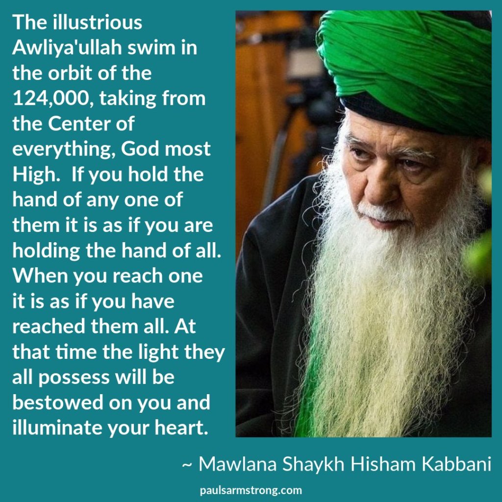 The illustrious Awliya’ullah swim in the orbit of the 124,000, taking from the Center of everything, God most High. If you hold the hand of any one of them it is as if you are holding the hand of all. When you reach one it is as if you have reached them all. At that time the light they all possess will be bestowed on you and illuminate your heart.