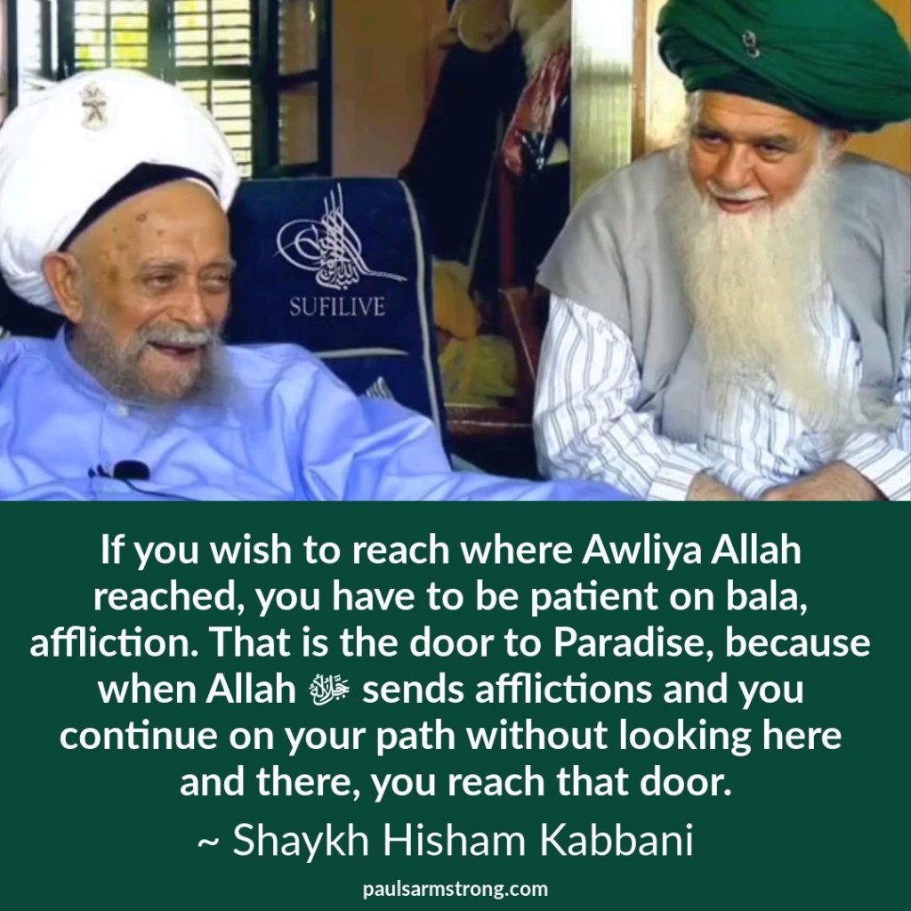 If you wish to reach where Awliya Allah reached, you have to be patient on bala, affliction. That is the door to Paradise, because when Allah ﷻ sends afflictions and you continue on your path without looking here and there, you reach that door.