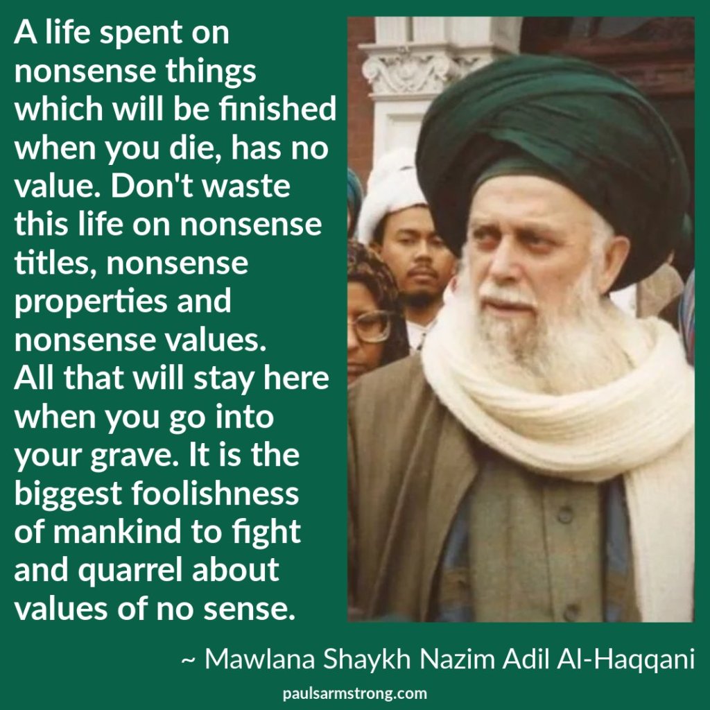“A life spent on nonsense things which will be finished when you die, has no value. Don’t waste this life on nonsense titles, nonsense properties and nonsense values. All that will stay here when you go into your grave. It is the biggest foolishness of mankind to fight and quarrel about values of no sense. Billions of people are lying underground who have wasted their lives like this. Do you think that if someone gives you a chequebook it will be useful there? In this life a chequebook can make you a king, but in the grave you can have ten of them and it is rubbish. People are running after rubbish.