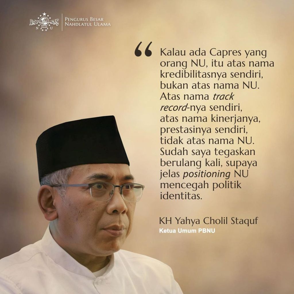 “Kalau ada Capres yang orang NU, itu atas nama kredibilitasnya sendiri, bukan atas nama NU.