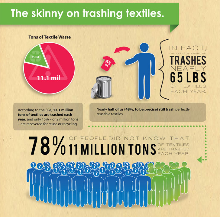 The more frequently we change our wardrobe, the more we multiply these impacts on our planet and the often poorer communities where our clothes are manufactured. In the UK, WRAP estimated 300,000 tonnes (worth £140 million) of clothing goes into landfill each year, while in the United States the Environment Protection Agency estimated that 9.5 million tonnes (10.5 million tons) were sent to landfill in 2015. Much of this clothing could have been repaired, reused, or recycled.